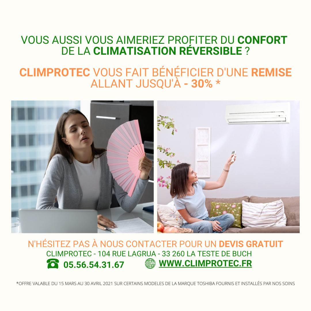CLIMPROTEC vous fait bénéficier d'une remise allant jusqu'à -30% du 15 mars au 30 avril 2021.